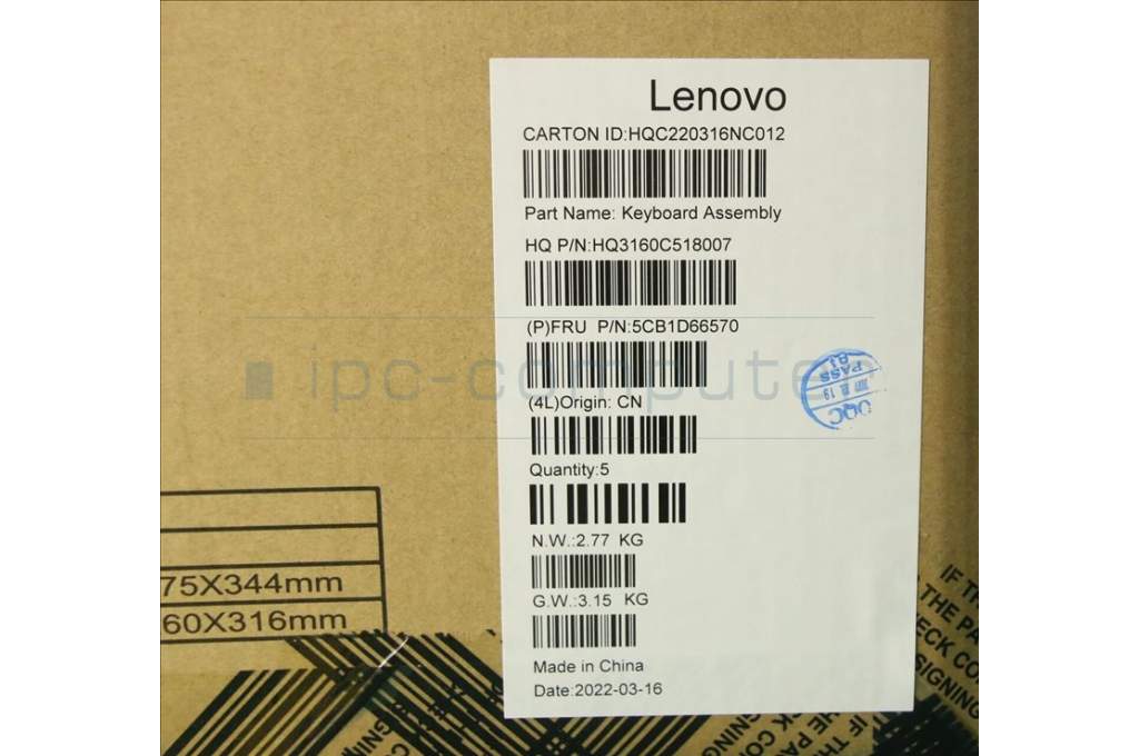 Lenovo 5CB1D66570 COVER Upper Case ASM_HUN_H20WJ SG