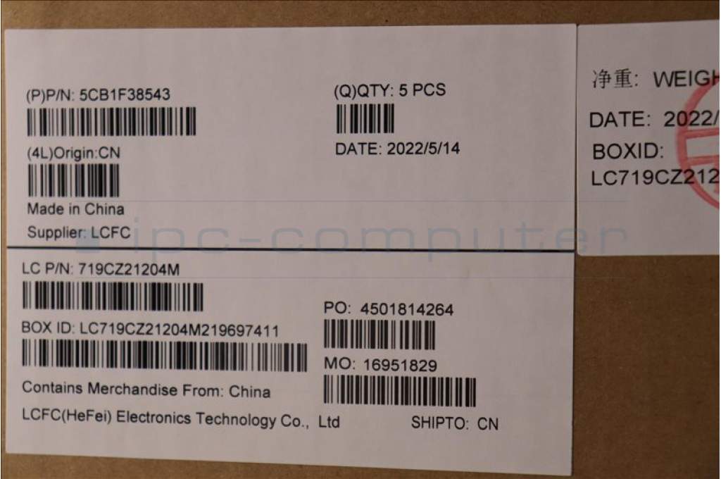 Lenovo 5CB1F38543 COVER Upper Case ASM_SPA L82RF SG w/WH
