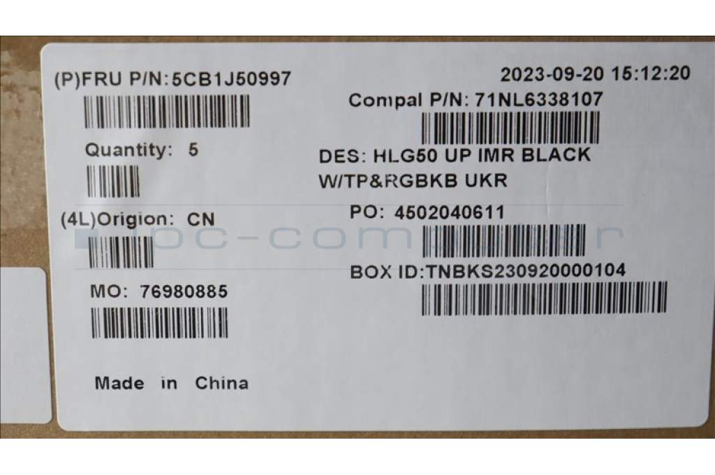 Lenovo 5CB1J50997 C-Cover with keyboard,Ukraine,RGB Backlight