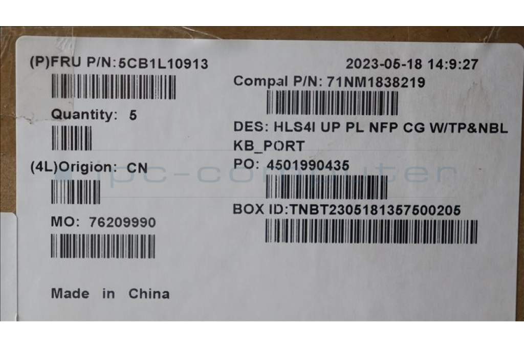 Lenovo 5CB1L10913 COVER UpperCase_POR C82XD NFP CG NBL PL