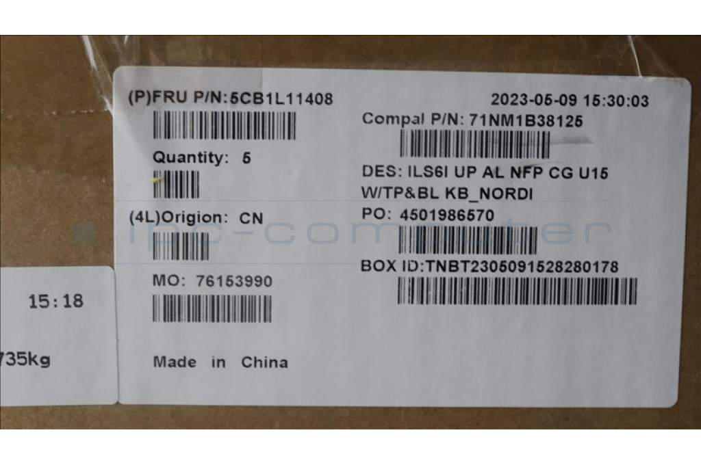 Lenovo 5CB1L11408 COVER UpCase_NORDIC C82XF NFP CG BL AL