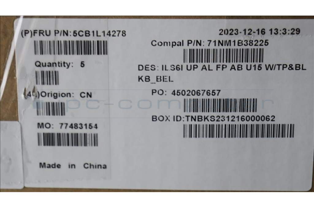 Lenovo 5CB1L14278 COVER UpperCase_BEL C82XF FP AB BL AL