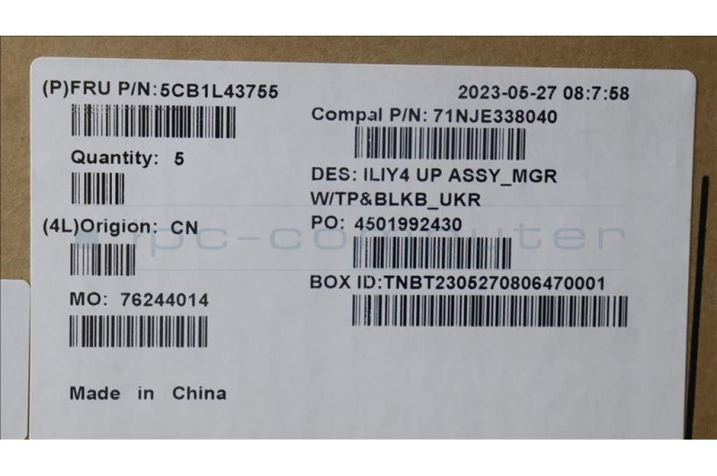 Lenovo 5CB1L43755 C-Abdeckung mit Tastatur, Ukraine, Mineralgrau, Hintergrundbeleuchtung