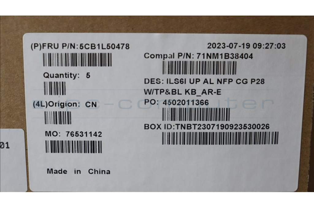 Lenovo 5CB1L50478 C-Abdeckung mit Tastatur, Arabisch, wolkengrau, Hintergrundbeleuchtung, Ohne Fingerabdruck, US