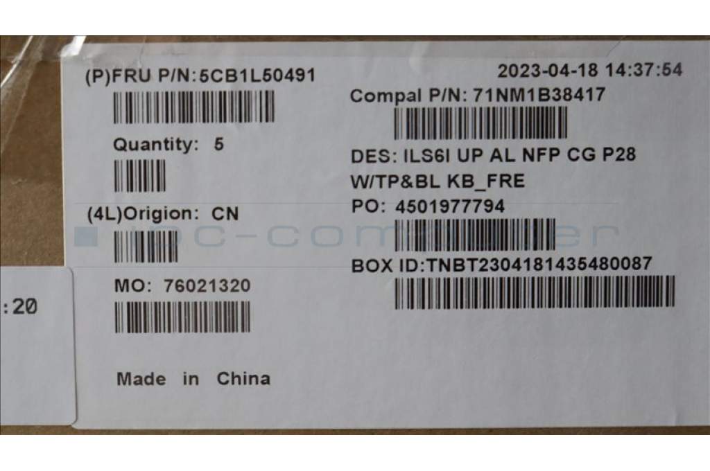Lenovo 5CB1L50491 C-Abdeckung mit Tastatur, Französisch, Wolkengrau, Hintergrundbeleuchtung, Ohne_Fingerabdruckscanner