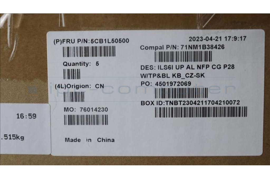 Lenovo 5CB1L50500 C-Abdeckung mit Tastatur, Tschechisch/Slowakisch, wolkengrau, Hintergrundbeleuchtung, ohne Fingerabdruck, GB
