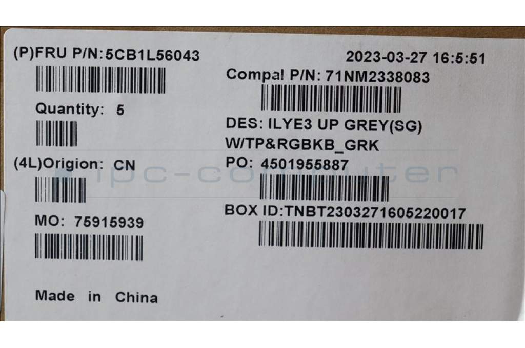 Lenovo 5CB1L56043 C-Abdeckung mit Tastatur, Griechisch, Sturmgrau, RGB-Hintergrundbeleuchtung