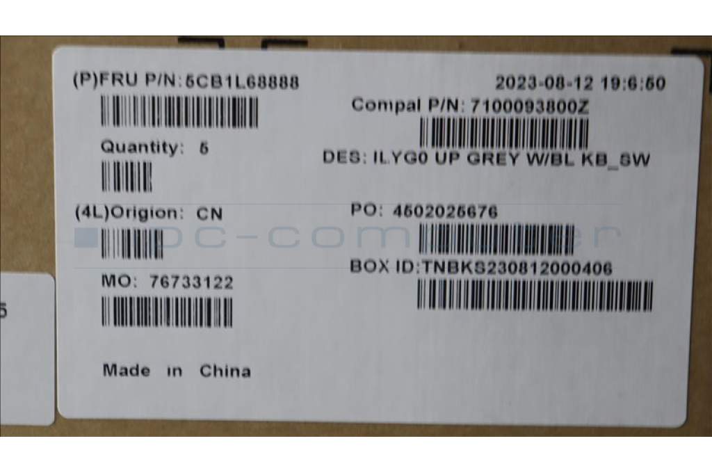 Lenovo 5CB1L68888 C-Abdeckung mit Tastatur, Schweiz, Weiße Hintergrundbeleuchtung