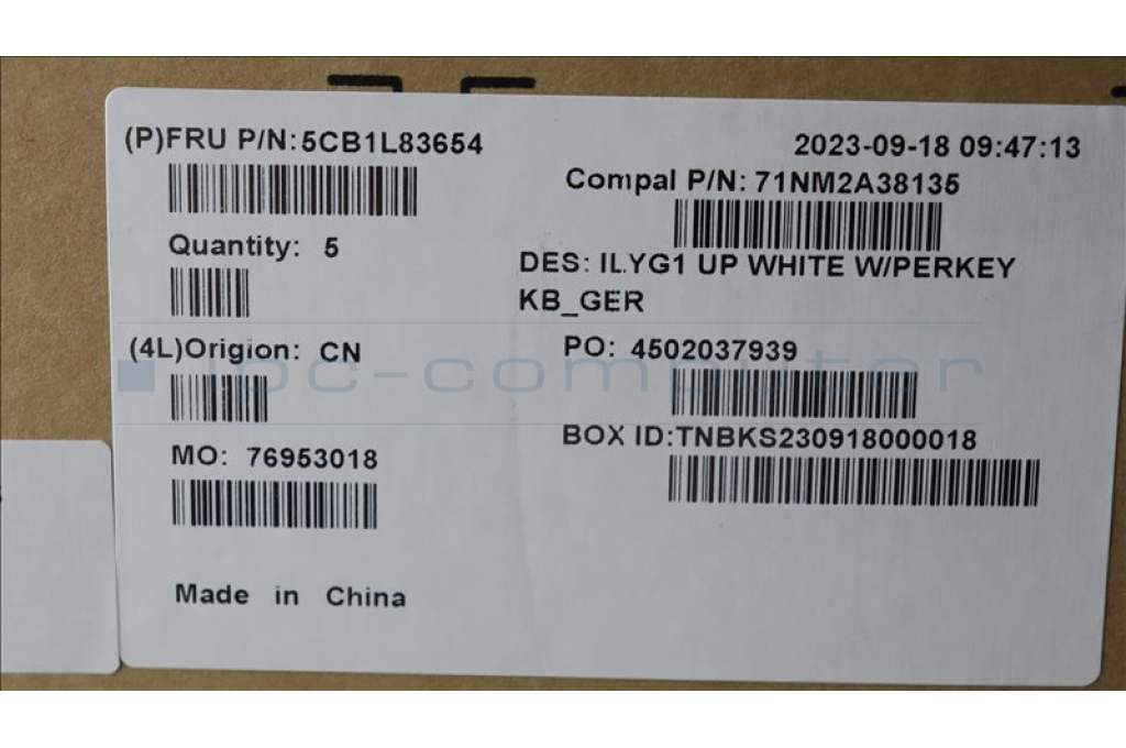 Lenovo 5CB1L83654 C-Abdeckung mit Tastatur, Deutsch, Weiß, RGB-Hintergrundbel.