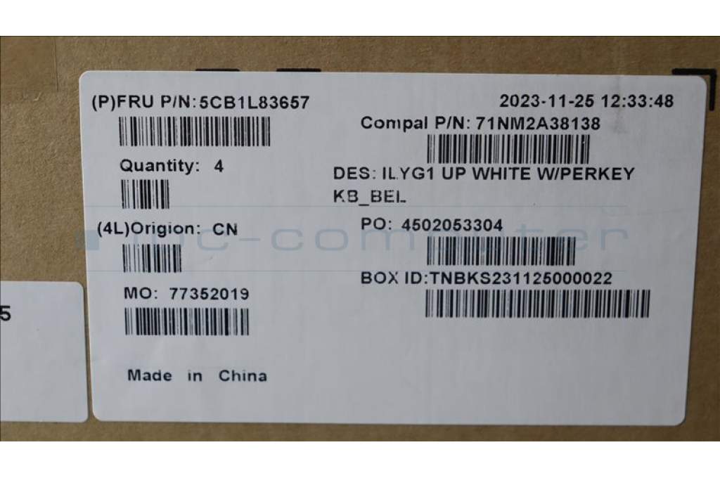 Lenovo 5CB1L83657 C-Cover with keyboard, Belgian, White, RGB Backlight, UK