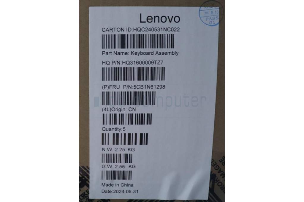 Lenovo 5CB1N61298 C-Cover with keyboard, Spanish, Luna Grey, w/Storm Grey Keycaps, UK