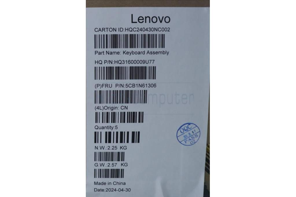Lenovo 5CB1N61306 C-Cover with keyboard, Russian, Luna Grey, w/Storm Grey Keycaps, US