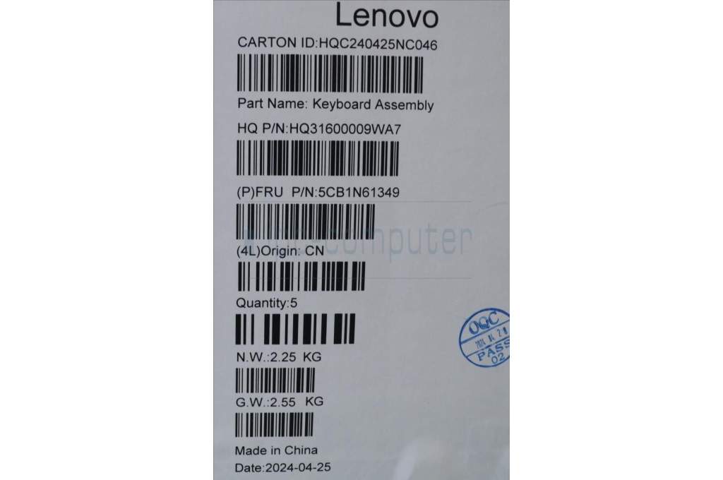 Lenovo 5CB1N61349 C-Cover with keyboard, US English Euro, Luna Grey, w/Grey Keycaps, US