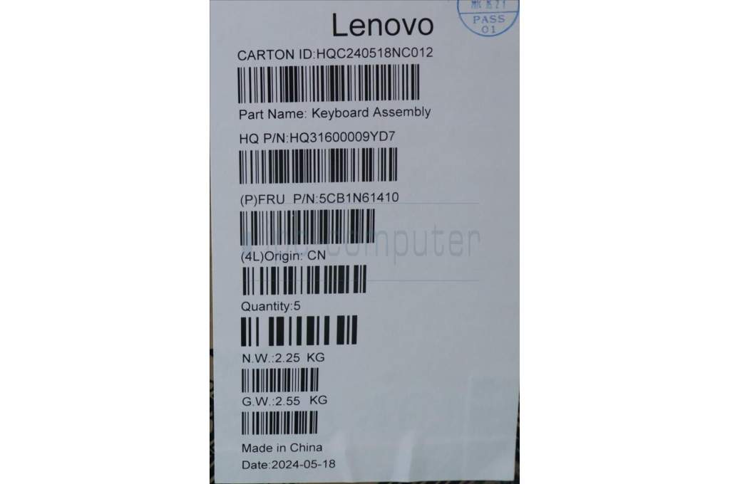 Lenovo 5CB1N61410 C-Cover with keyboard, US English Euro, Cosmic Blue, w/Grey Keycaps, US