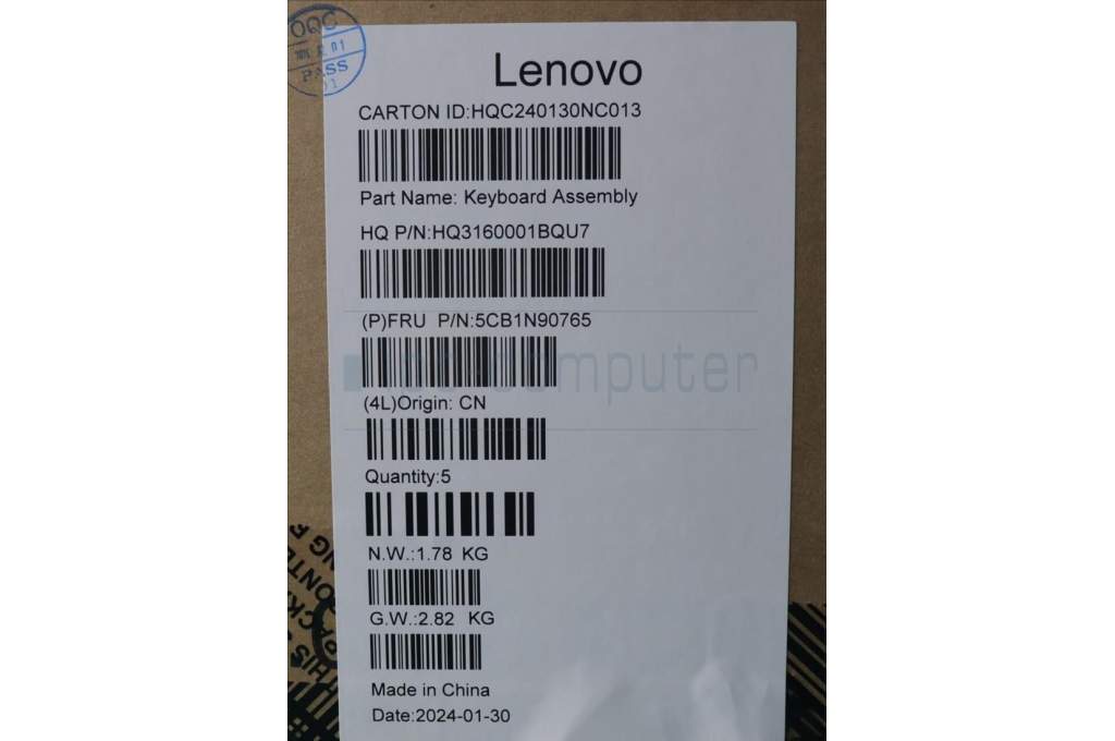 Lenovo 5CB1N90765 C-Cover with keyboard, English, Luna Grey, w/puresight pro logo, US