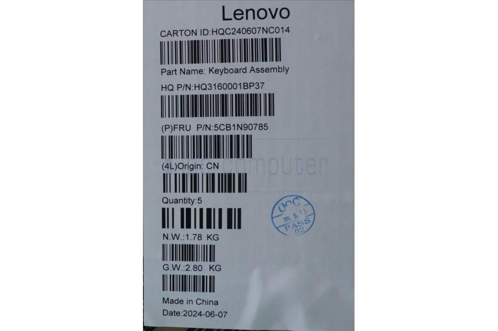 Lenovo 5CB1N90785 C-Cover with keyboard, Italian, Luna Grey, w/puresight pro logo, UK