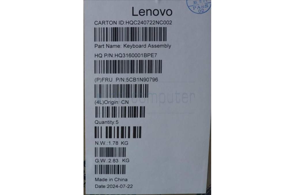 Lenovo 5CB1N90796 C-Cover with keyboard, Portuguese, Luna Grey, UK