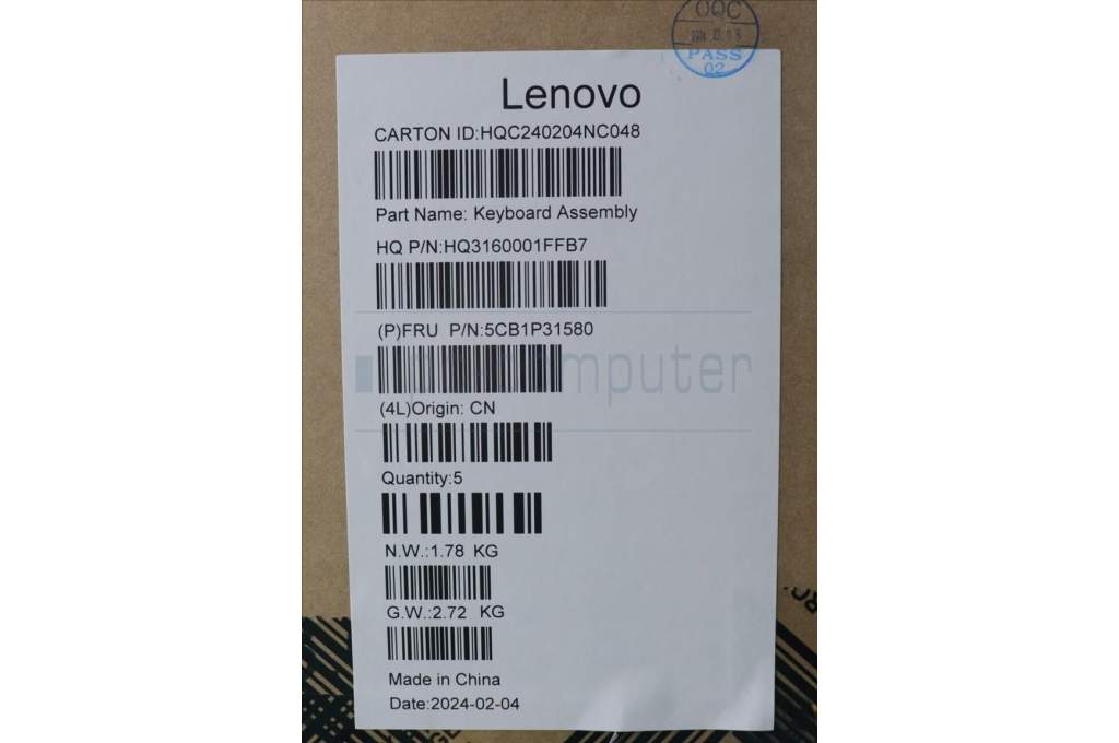 Lenovo 5CB1P31580 C-Cover with keyboard, UK English, Arctic Grey, UK
