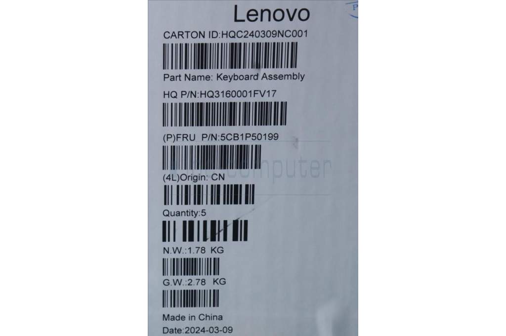 Lenovo 5CB1P50199 COVER Upper Case ASM POR H83E2 TT PST
