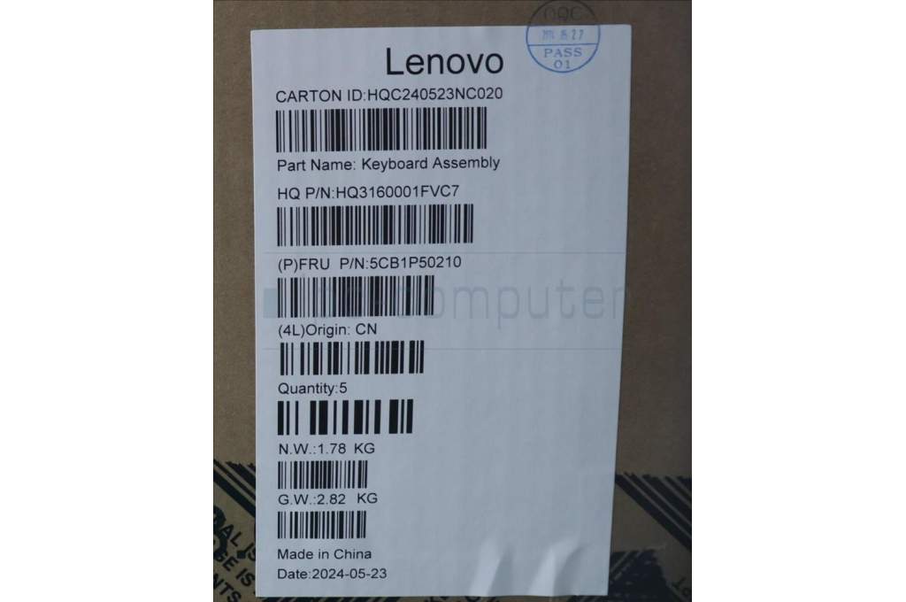 Lenovo 5CB1P50210 COVER Upper Case ASM ARA H83E2 LG PST