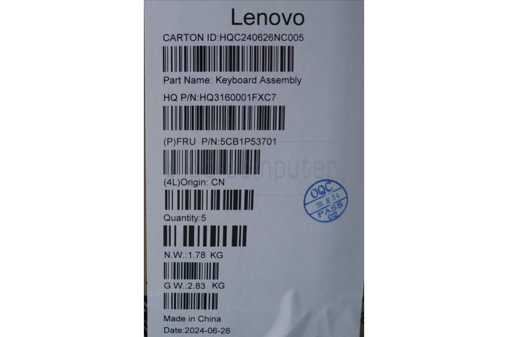 Lenovo 5CB1P53701 COVER UpperCaseASM UKR H83E2 TT PST DIS