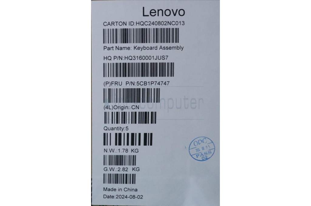 Lenovo 5CB1P74747 C-Cover with keyboard, Arabic, Luna Grey, Puresight Logo, US