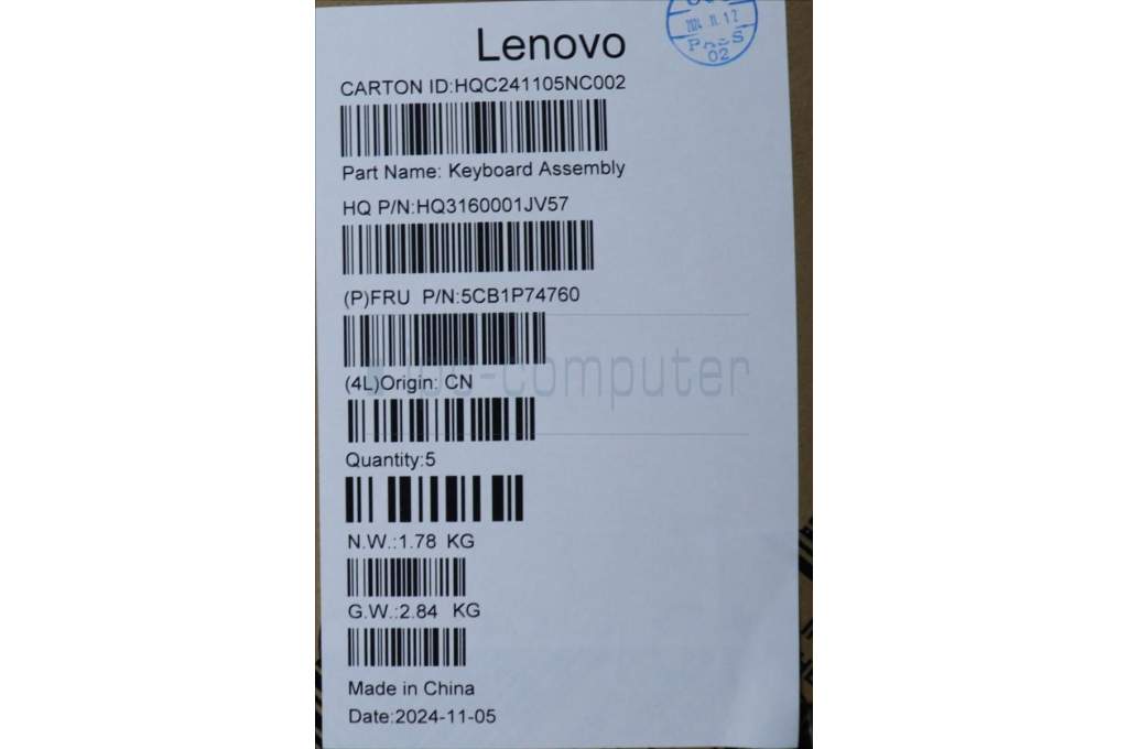 Lenovo 5CB1P74760 C-Cover with keyboard, Hungarian, Luna Grey, Puresight Logo, UK