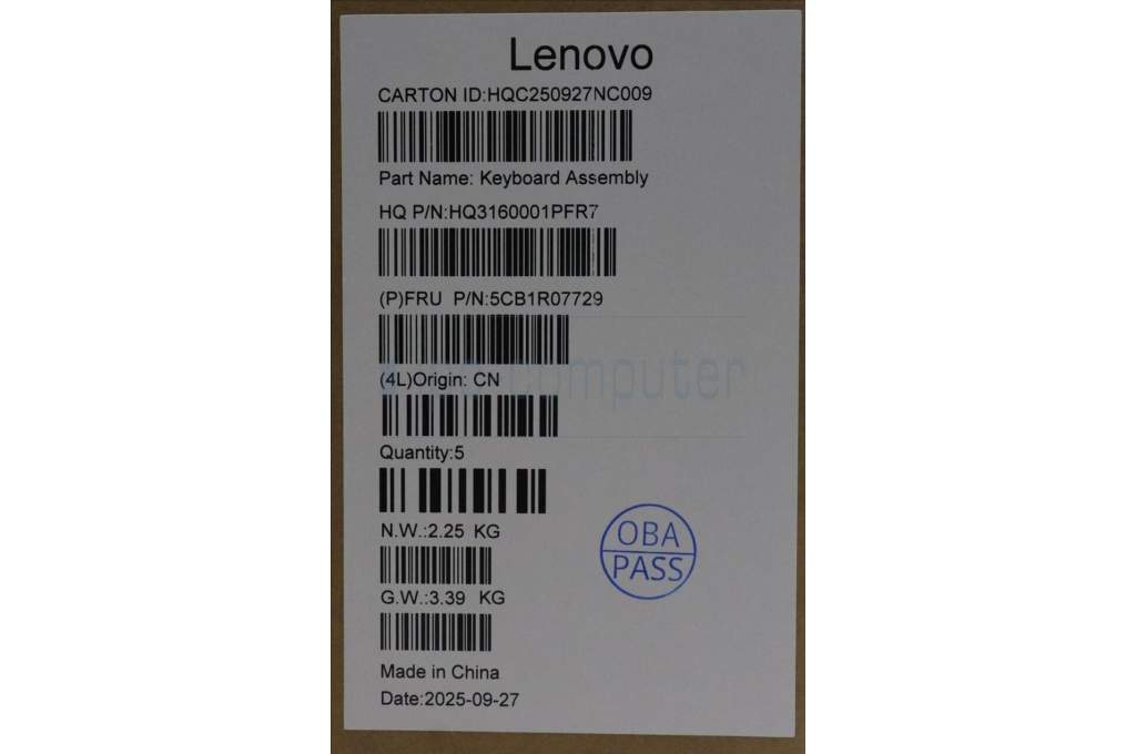Lenovo 5CB1R07729 C-Cover with keyboard, Arabic, Luna Grey, Backlight, 3CELL, US