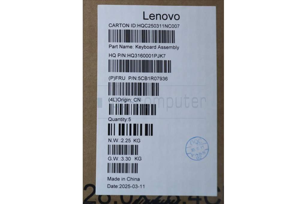 Lenovo 5CB1R07936 C-Cover with keyboard, US English Euro, Luna Grey, Non-Backlight, 4CELL, US