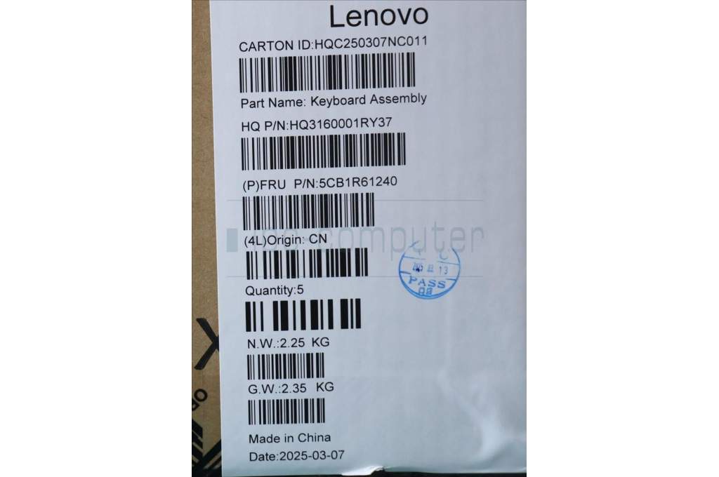 Lenovo 5CB1R61240 C-Cover with keyboard, UK English, Luna Grey, FingerPrint, Puresight Logo, UK