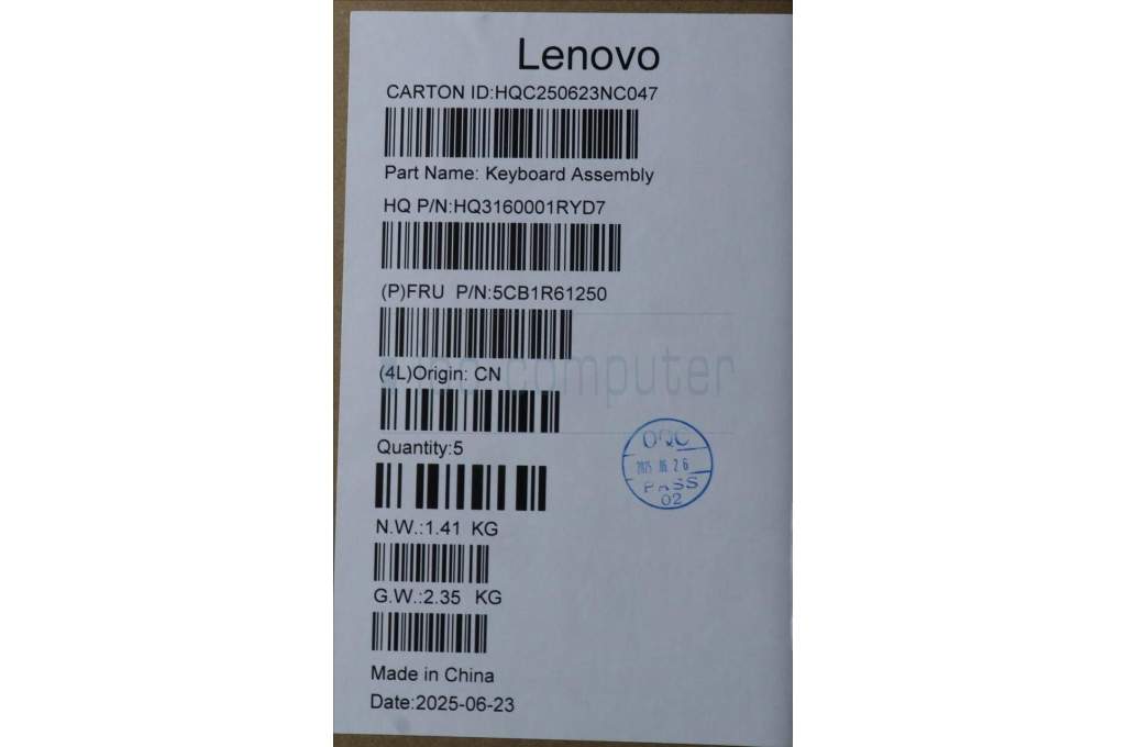 Lenovo 5CB1R61250 C-Cover with keyboard, French Arabic, Luna Grey, Non-FingerPrint, Puresight Logo, UK