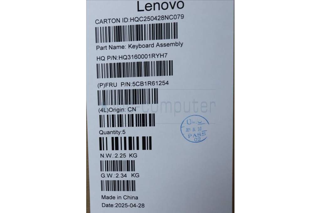 Lenovo 5CB1R61254 C-Cover with keyboard, Italian, Luna Grey, Non-FingerPrint, Puresight Logo, UK