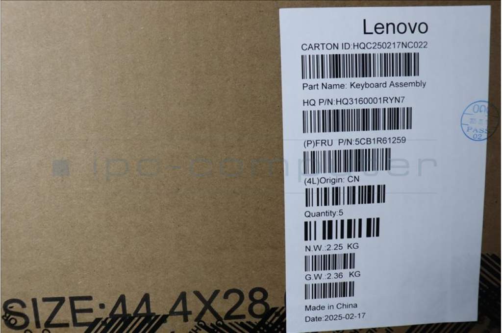 Lenovo 5CB1R61259 C-Cover with keyboard, German, Luna Grey, Non-FingerPrint, Puresight Logo, UK