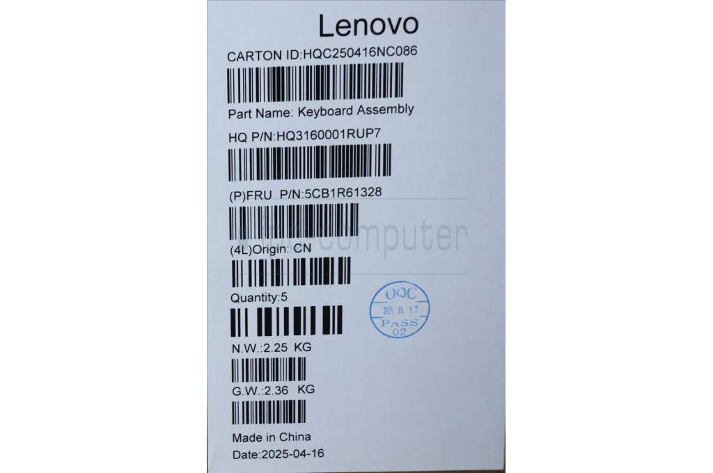 Lenovo 5CB1R61328 C-Cover with keyboard, Slovenian, Seashell, Non-FingerPrint, Puresight Logo, UK