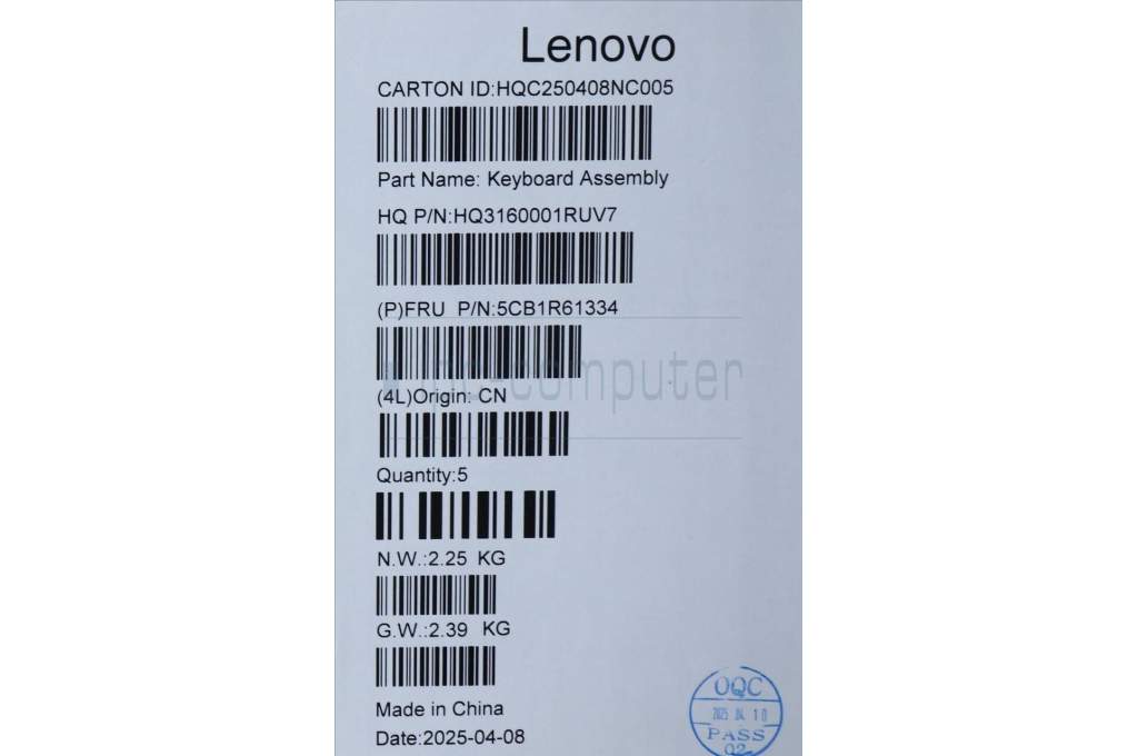 Lenovo 5CB1R61334 C-Cover with keyboard, UK English, Seashell, Non-FingerPrint, Puresight Logo, UK