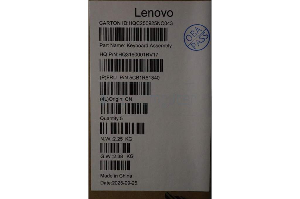 Lenovo 5CB1R61340 C-Cover with keyboard, Belgian, Seashell, Non-FingerPrint, Puresight Logo, UK