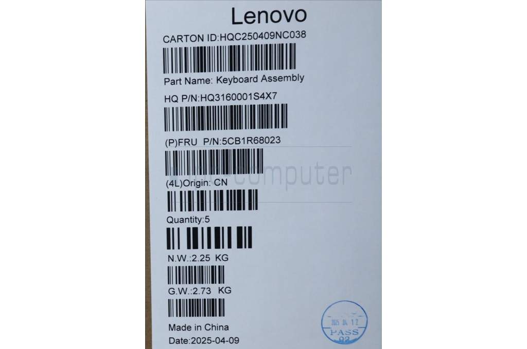 Lenovo 5CB1R68023 C-Cover with keyboard, UK English, Luna Grey, Puresight Logo, FingerPrint, UK