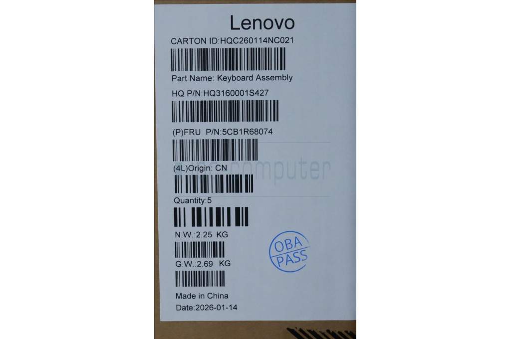 Lenovo 5CB1R68074 C-Cover with keyboard, Spanish, Luna Grey, Non-Puresight Logo, Non-FingerPrint, UK