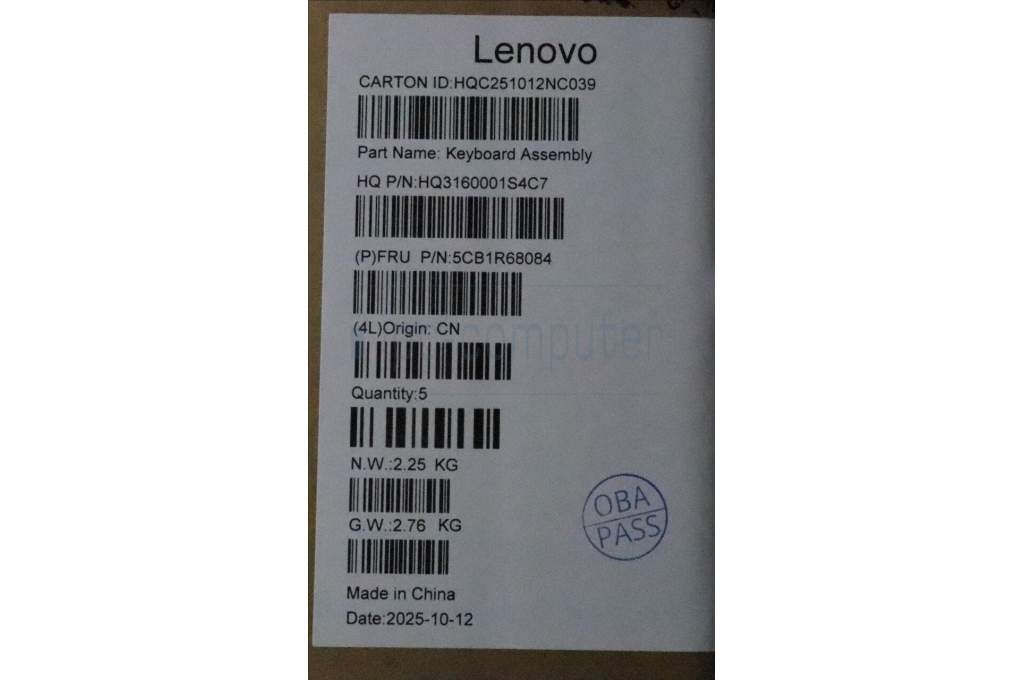 Lenovo 5CB1R68084 C-Cover with keyboard, UK English, Luna Grey, Non-Puresight Logo, Non-FingerPrint, UK