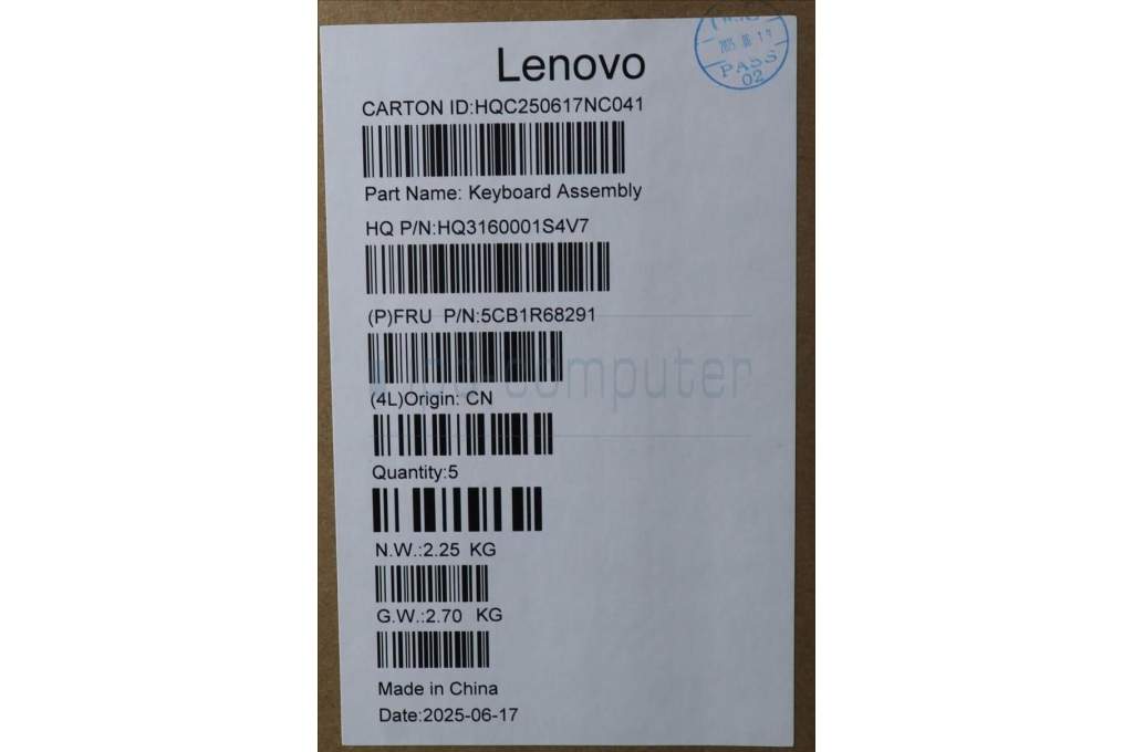 Lenovo 5CB1R68291 C-Cover with keyboard, Ukraine, Luna Grey, Puresight Logo, Non-FingerPrint, US