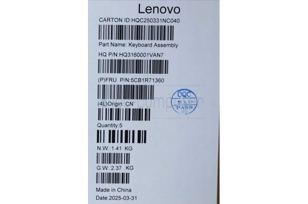 Lenovo 5CB1R71360 C-Cover with keyboard, Switzerland, Seashell, Non-FingerPrint, Puresight Logo, UK
