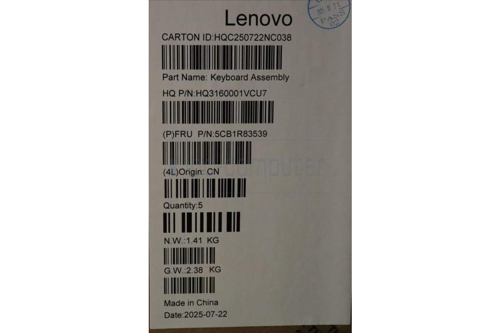 Lenovo 5CB1R83539 C-Cover with keyboard, French Arabic, Seashell, Non-FingerPrint, Non-Puresight Logo, UK