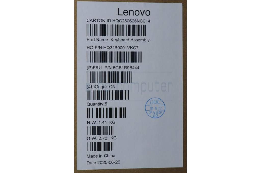 Lenovo 5CB1R98444 C-Cover with keyboard, Switzerland, Seashell, FingerPrint, Non-Puresight Logo, UK