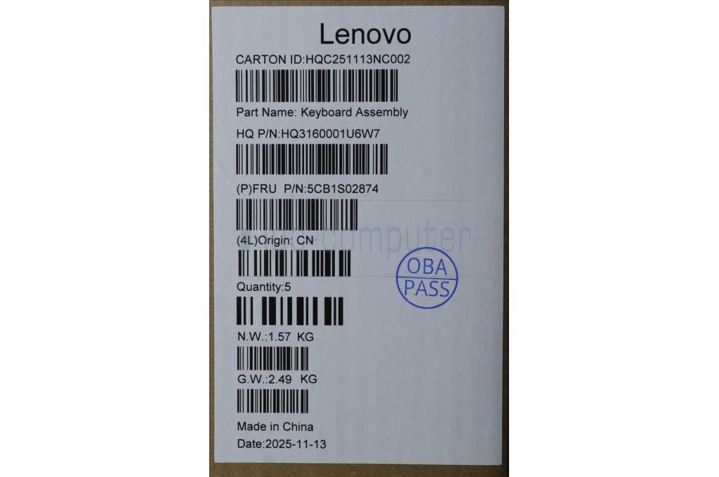 Lenovo 5CB1S02874 C-Cover with keyboard, Hebrew, Cosmic Blue, Backlight, Non-FingerPrint, US