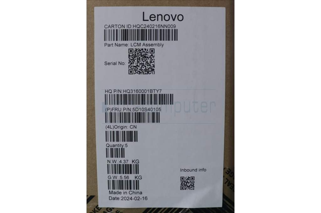Lenovo 5D10S40105 Lenovo LCD Module,16",WUXGA,Touch,Glare,IPS,300nit,45%NTSC