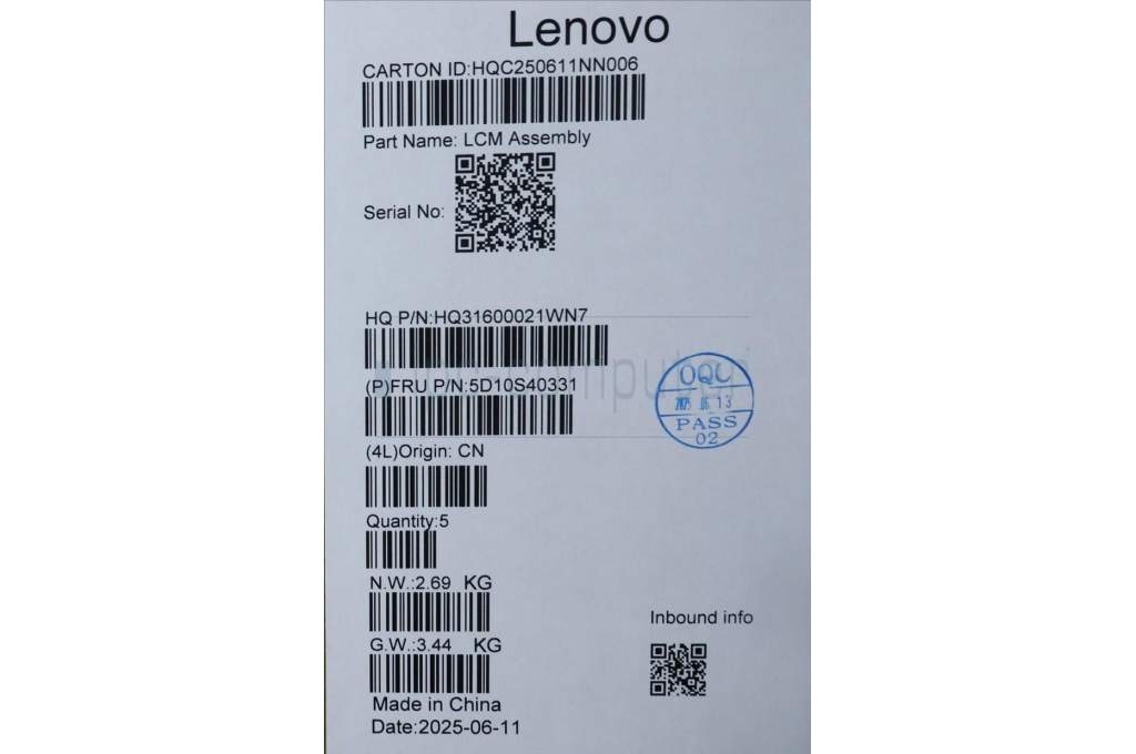 Lenovo 5D10S40331 Lenovo LCD Module, 14", WUXGA, Touch, Glare, Anti-smudge, OLED, 400nit, 100%DCI-P3, Seashell, W/5MP Camera