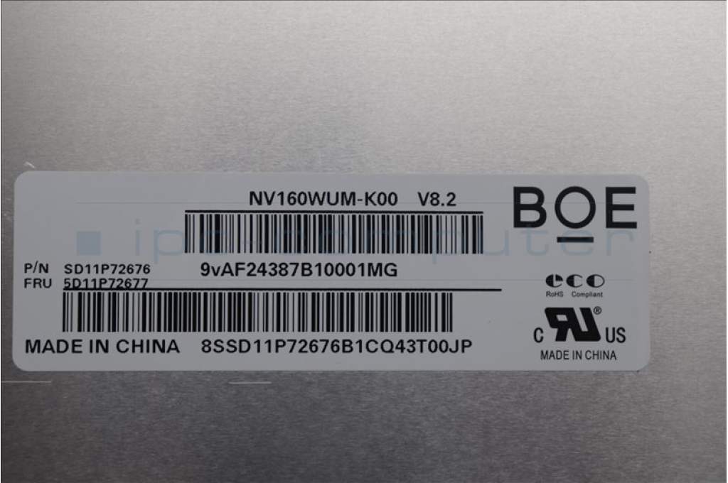Lenovo 5D11P72677 DISPLAY FRU BOE NV160WUM-K00 V8.2 16.0
