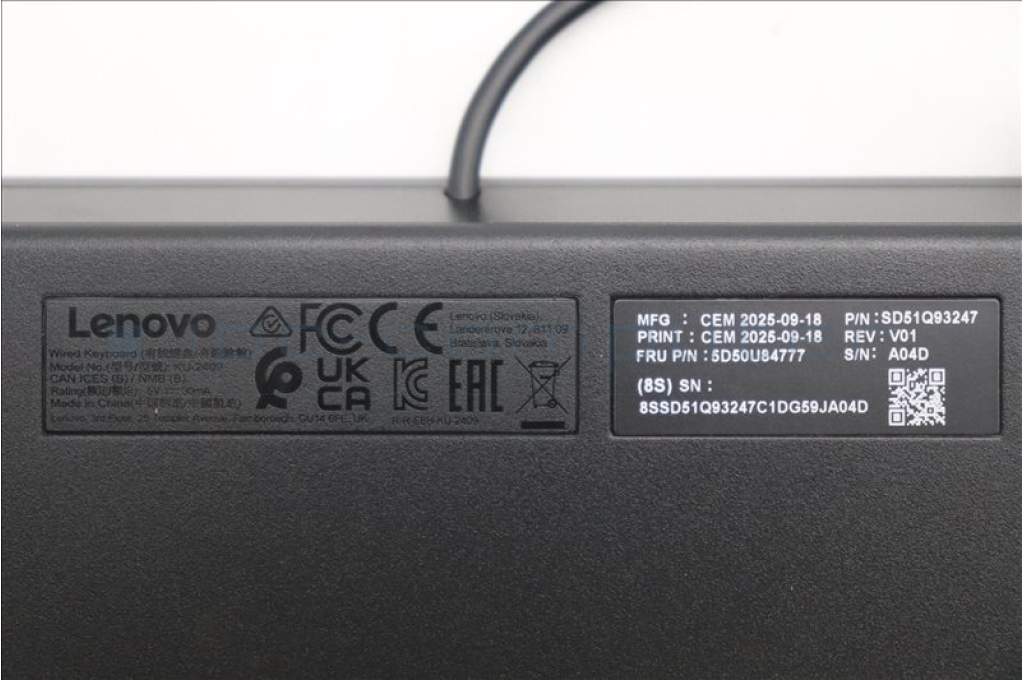 Lenovo 5D50U84777 AI Keyboard External, USB, Dutch, Black