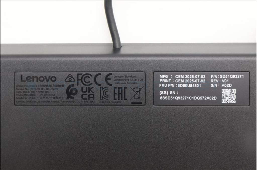 Lenovo 5D50U84801 AI Keyboard External, USB, Thai, Black