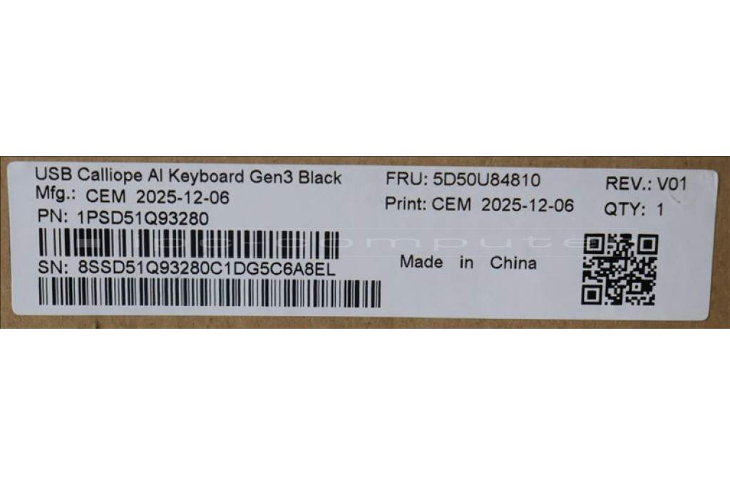 Lenovo 5D50U84810 AI Keyboard External, USB, Estonian, Black